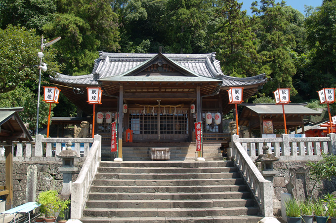 御祭神は、素戔嗚尊(すさのおのみこと)、奇稲田姫命(くしなだひめのみこと)、八幡大神(やはたのおおかみ)、大山咋大神(おおやまくいのおおかみ)です。