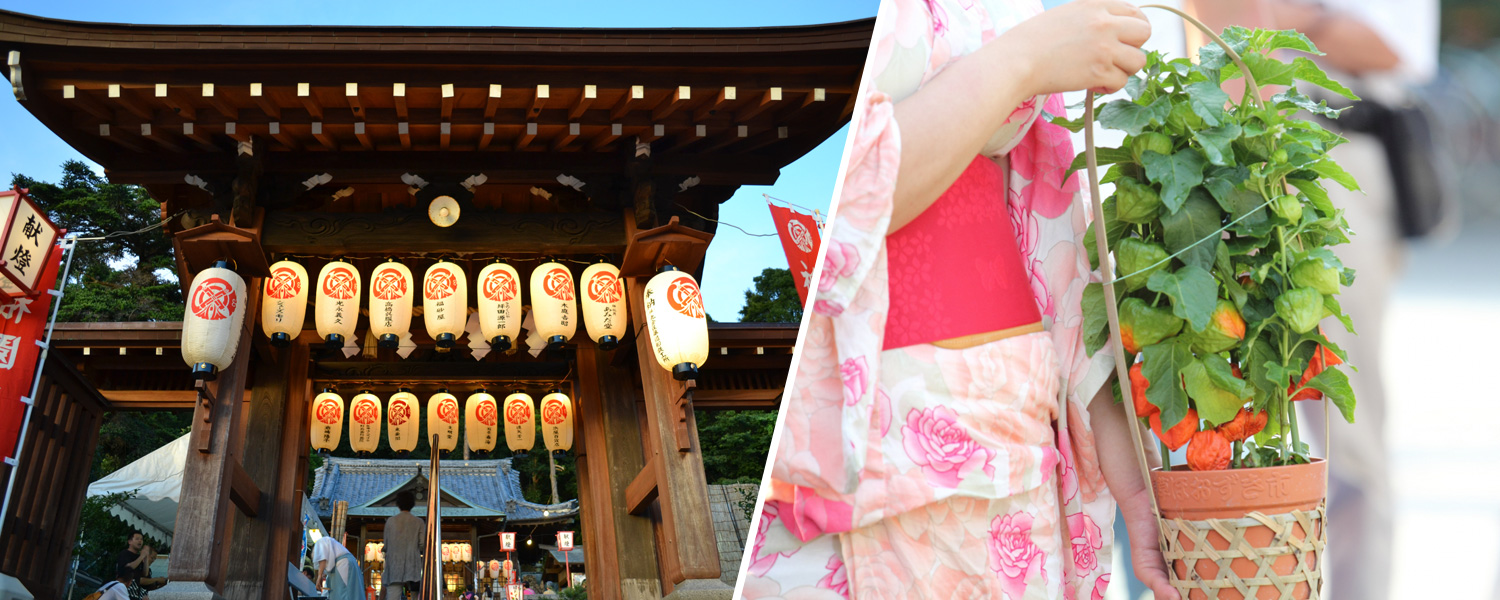 陽が落ちる夕刻より、縁起物の「ほおずき」を買求める人、夕涼みを兼ねた浴衣姿の参詣の方が訪れる風景は、「夏の風物詩」です。