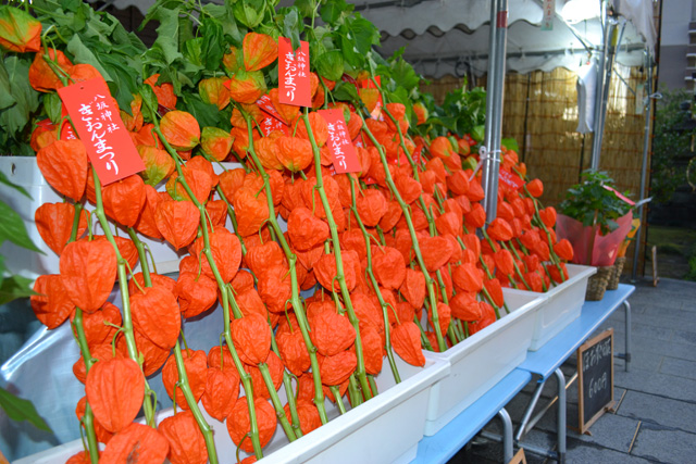 御祭神 素盞嗚尊(スサノオノミコト)には薬法を施された伝説がありますが、ほおずきは薬草の一種で、また、実がカヤ(がく)に包まれているので、厄除け雷よけなどの言い伝えもあります。