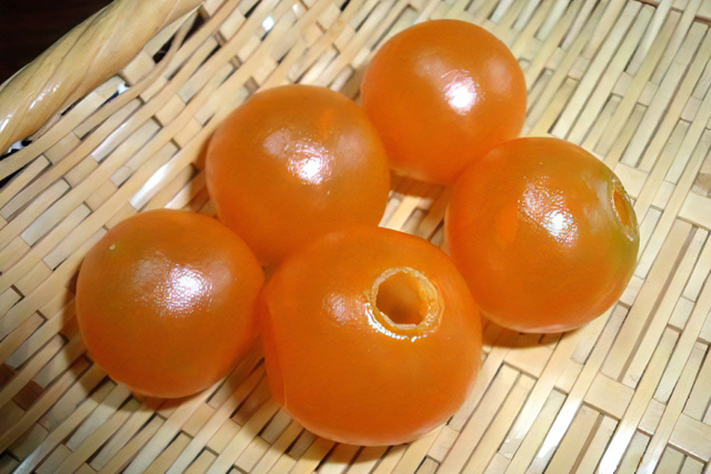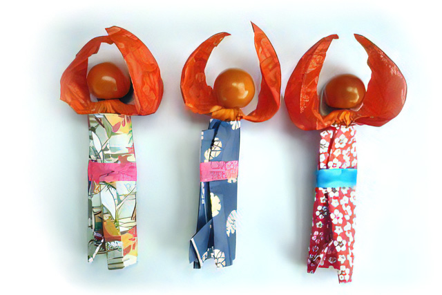 昔は、実の種を取り出して子供たちが口にふくんで鳴らしたり千代紙を着せてほおずき人形を作って遊びました。